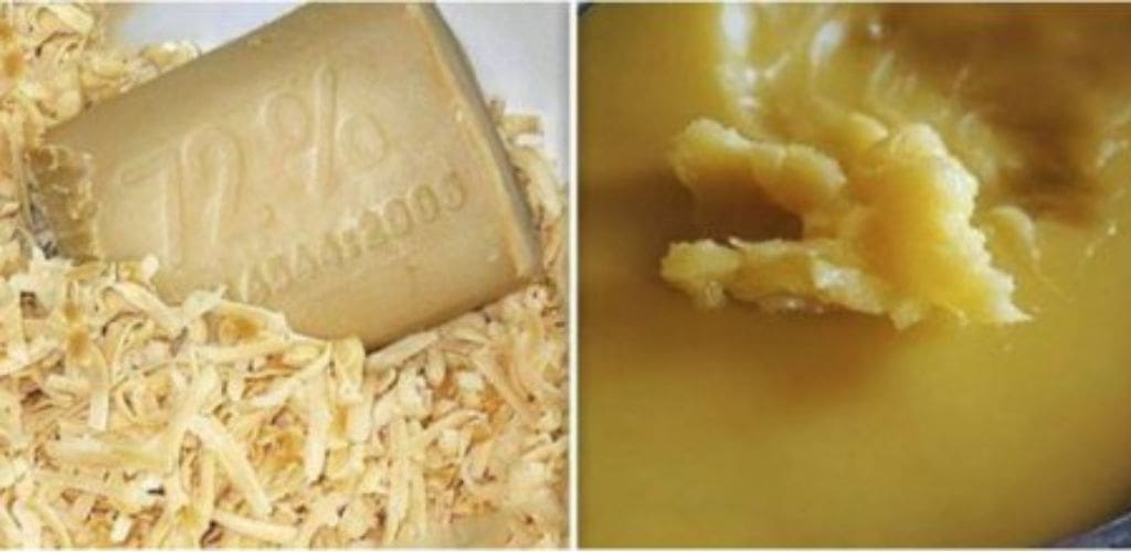 - Dedame muilo gabalėlį, bičių vašką, medų, propolį, mumiją ir aliejų į švarų indą.