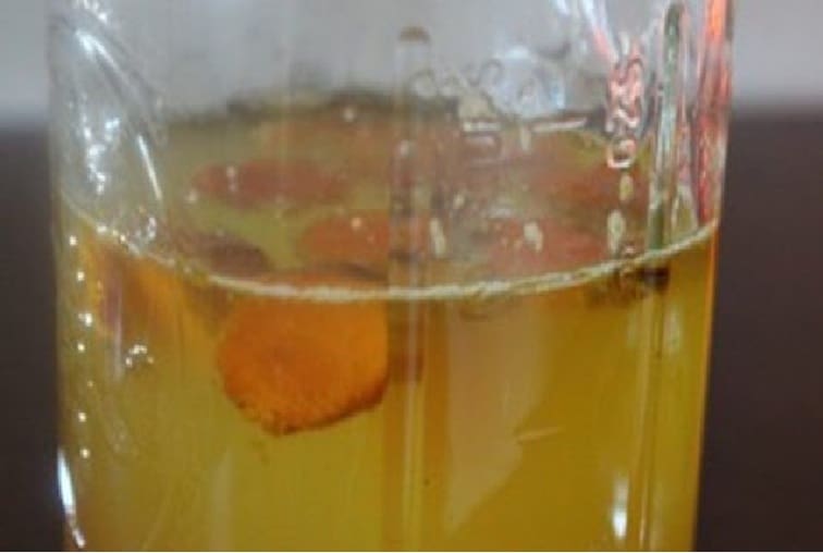 Į stiklinę šilto vandens įberkite vieną arbatinį šaukštelį ciberžolės.