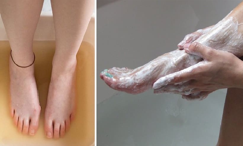 3. Pėdų plovimas ir drėkinimas