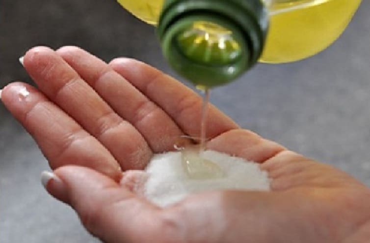 Kaip naudoti: Sumaišykite kelis lašus ricinos aliejaus su šaukštu kepimo sodos, o gautą pastą užtepkite ant tamsių dėmių. Palikite keletą minučių, tada nuplaukite šiltu vandeniu. Procedūrą kartokite keletą kartų per savaitę.