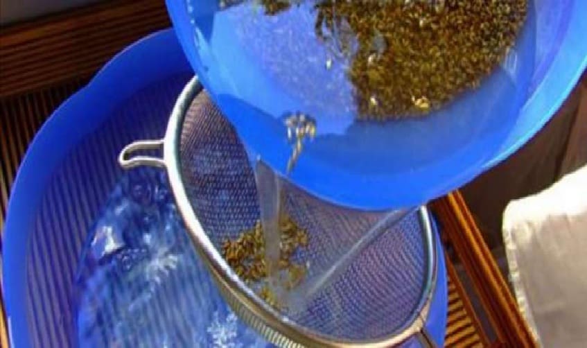 Užpilkite sėklas verdančiu vandeniu ir uždenkite. Leiskite nusistovėti apie vieną valandą, kad sėklos išleistų savo naudingas medžiagas.