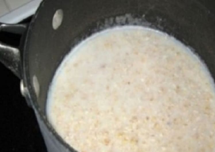 Avižinius dribsnius sumaišykite su šiltu vandeniu ir įdėkite smulkintą imbierą.