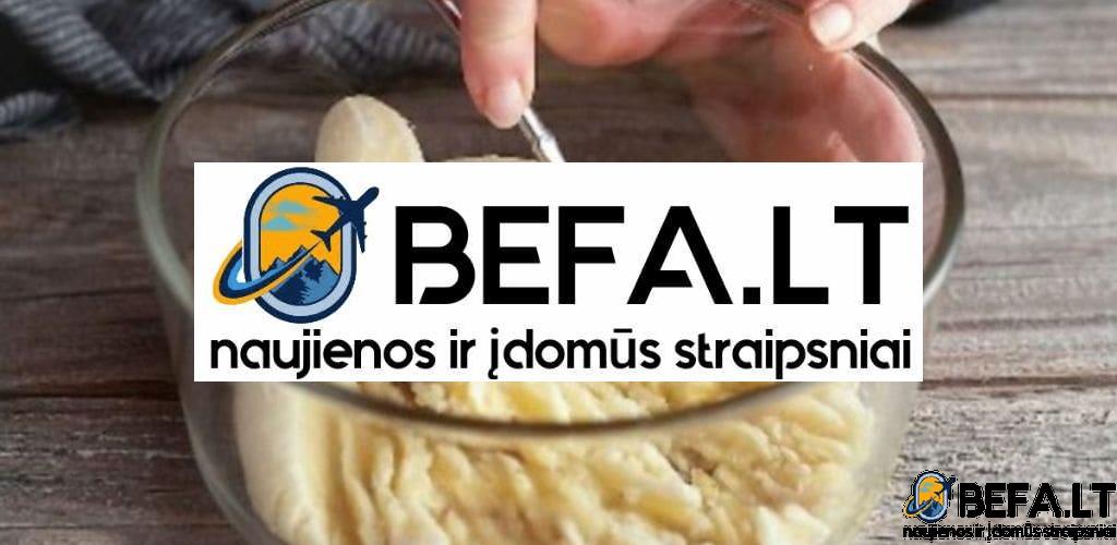 - Nulupkite bananus ir gerai sutrinkite juos šakute iki vientisos masės.