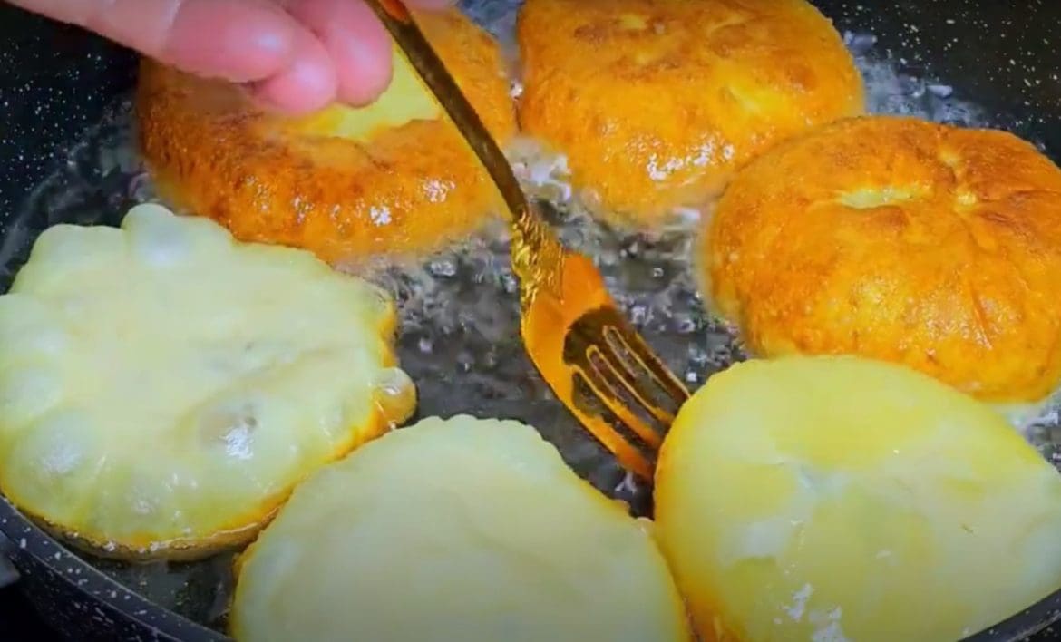 Kepkite pyragėlius keptuvėje su įkaitintu aliejumi iš abiejų pusių, kol jie taps auksinės spalvos. Aliejus turėtų siekti maždaug iki pusės pyragėlio aukščio – taip jie apskrus tolygiai, o vidus išliks sultingas.