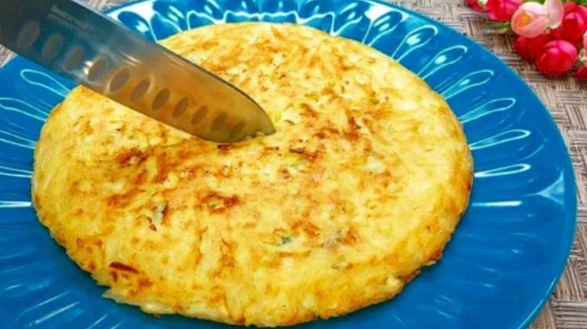 Rezultatas – bulvių pyragas su sūriu. Tai geras pusryčių patiekalas, paruošiamas greitai ir iš paprastų ingredientų.