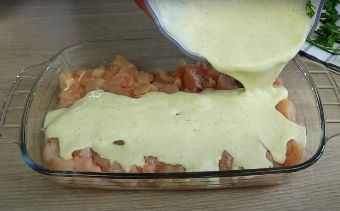 Pirmiausia, vištienos filė reikia supjaustyti mažais gabalėliais, kad jie geriau įsisavintų padažą ir greičiau iškeptų. Pasirinkite kokybišką vištieną, kad patiekalas būtų kuo sultingesnis. Po to, sutepkite kepimo indą augaliniu aliejumi. Tai padės išvengti mėsos prikibimo prie indo, o taip pat suteiks papildomo skonio.