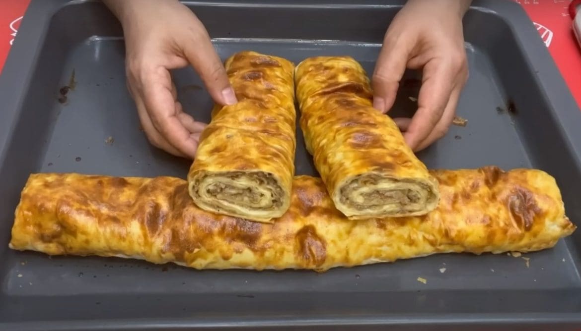 Rezultatas – sultingi ir švelnūs suktinukai su sūriu ir mėsa. Kad vyniotinis neišsiskleistų, rekomenduojama naudoti šviežią pita duoną.