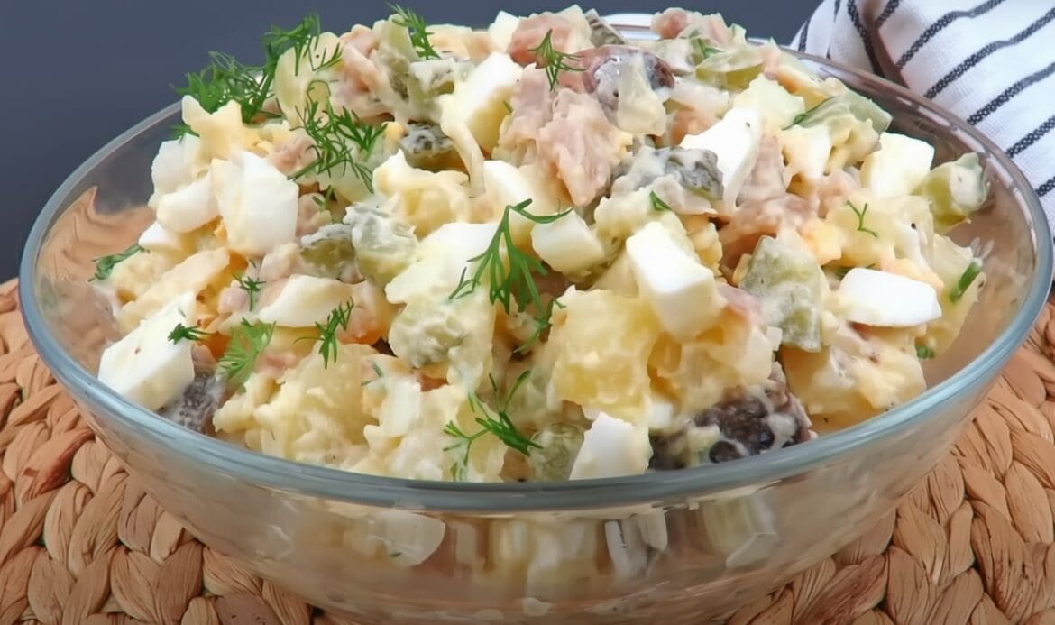 Rezultatas – gardžios, sočios ir aromatingos skumbrės salotos, kurios tikrai patiks kiekvienam. Skanaus! 🐟🥔