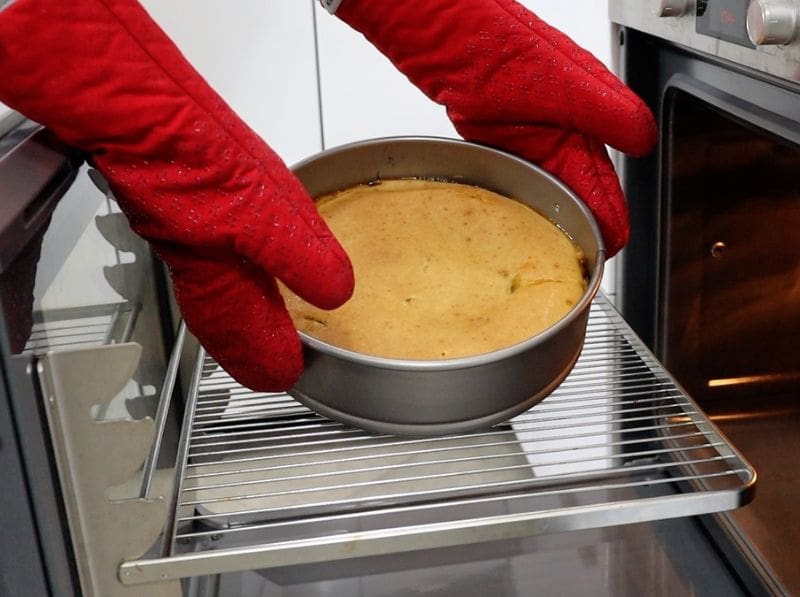 Pyragą kepkite iki 180°C įkaitintoje orkaitėje 40-50 minučių Išimkite pyragą iš orkaitės ir leiskite atvėsti.