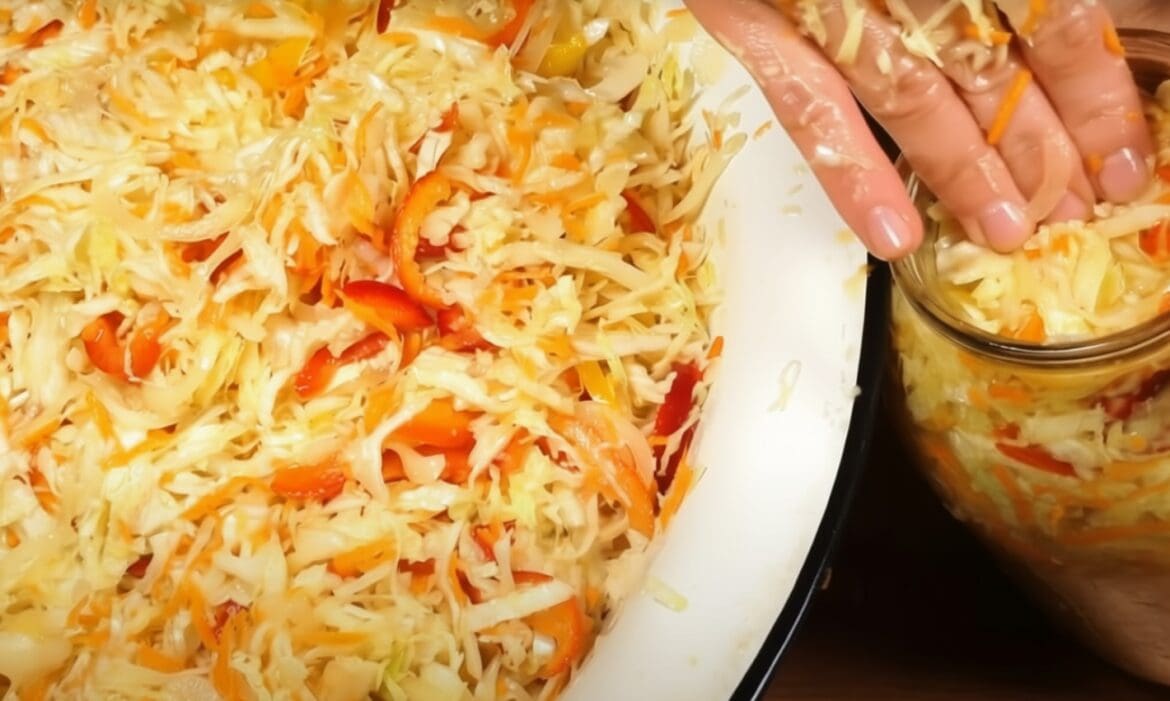 Paruoštos marinuotų kopūstų salotos yra traškios, gaivios ir subalansuoto skonio. Lengvas rūgštumas puikiai dera su daržovių saldumu, o aliejus suteikia švelnumo.