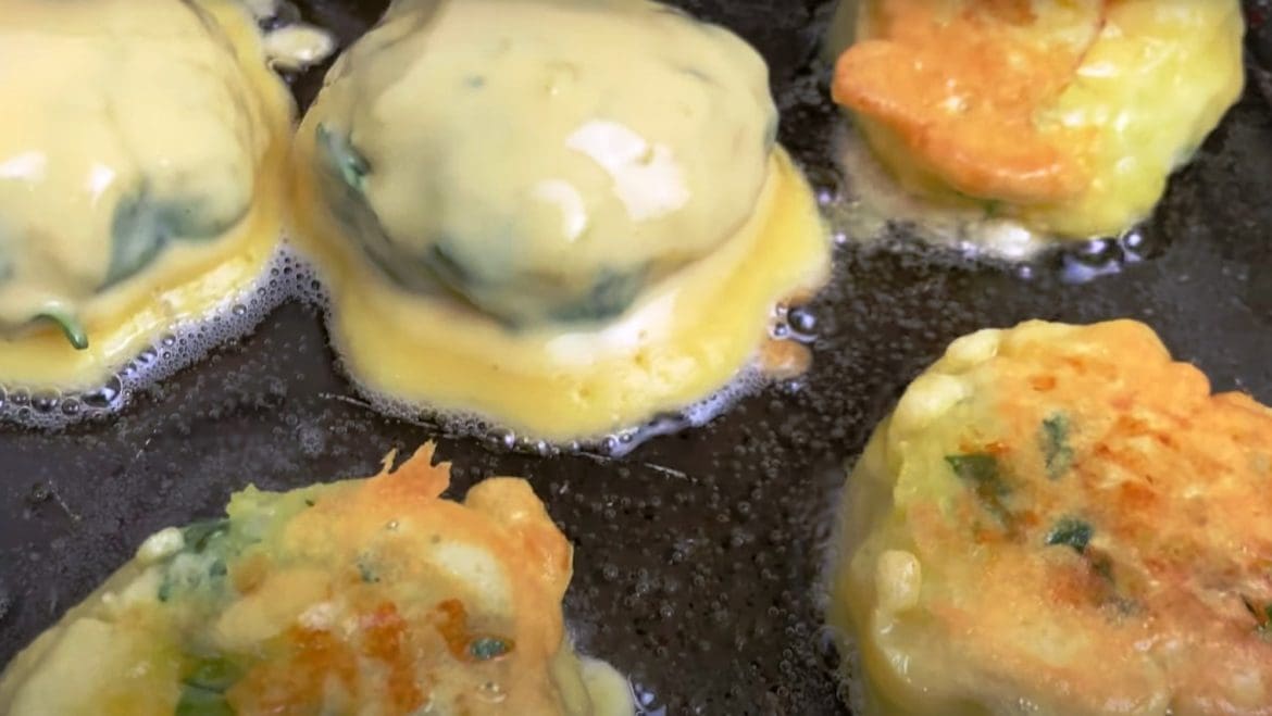 Dėti į įkaitintą keptuvę ir kepti iš abiejų pusių, kol apskrus ir taps auksinės spalvos.
