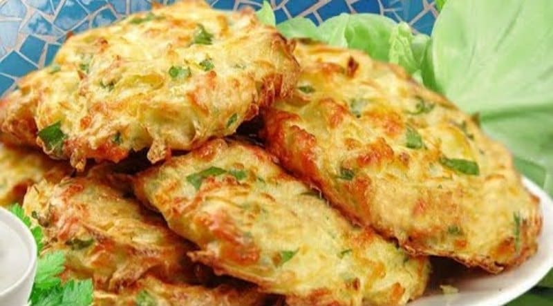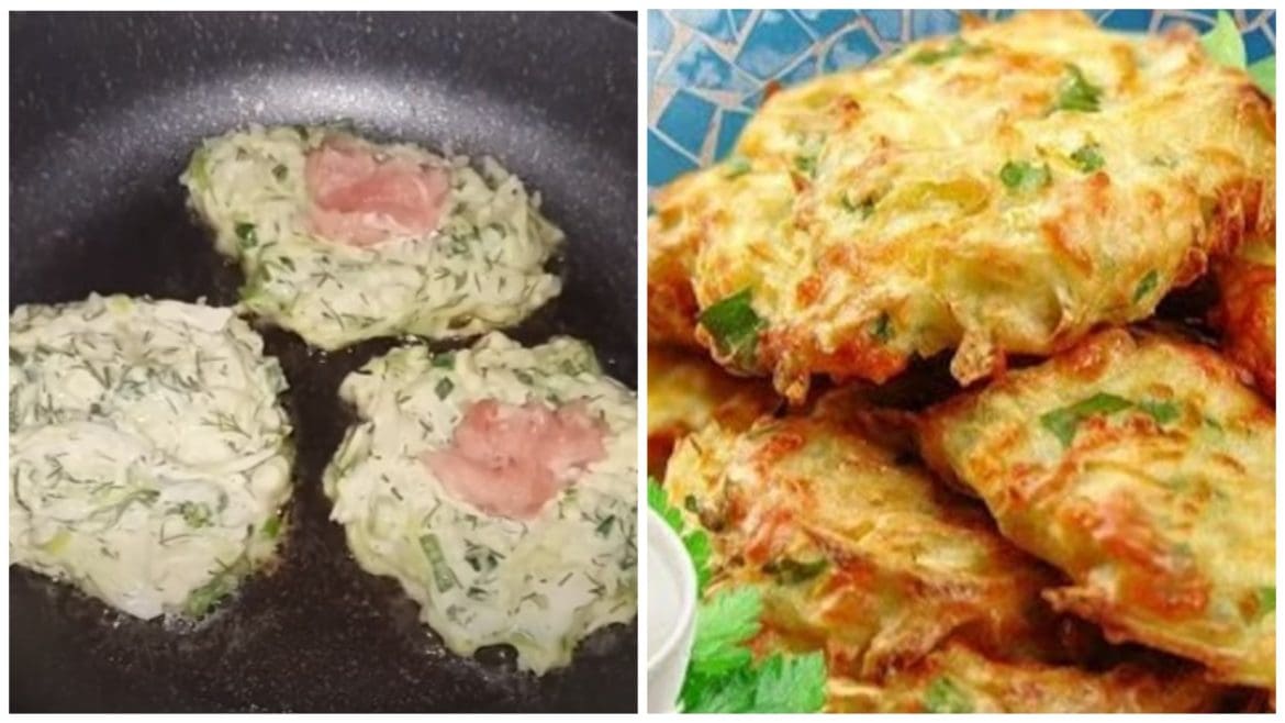 Įkaitinkite augalinį aliejų keptuvėje. Su šaukštu paimkite reikiamą kiekį tešlos ir suformuokite plokščius pyragėlius. Viduryje kiekvieno pyragėlio dėkite šaukštą faršo ir uždenkite tešlos laiveliu. Stenkitės gerai uždaryti pyragėlius, kad įdaras neišbėgtų kepant.