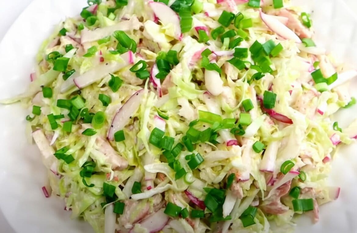 Šios vištienos, ridikėlių ir jaunų kopūstų salotos – tai puikus pasirinkimas tiems, kurie ieško lengvo, tačiau kartu ir sotaus patiekalo kasdienai. Tai universalus receptas, tinkantis tiek pietums, tiek vakarienei, o taip pat gali tapti puikiu užkandžiu šventiniam stalui. Salotos išsiskiria tuo, kad jose harmoningai dera šviežios, traškios daržovės ir švelniai kepta vištiena, o visa tai sujungia subtilus, lengvai aštrus česnakinis padažas su grietine.