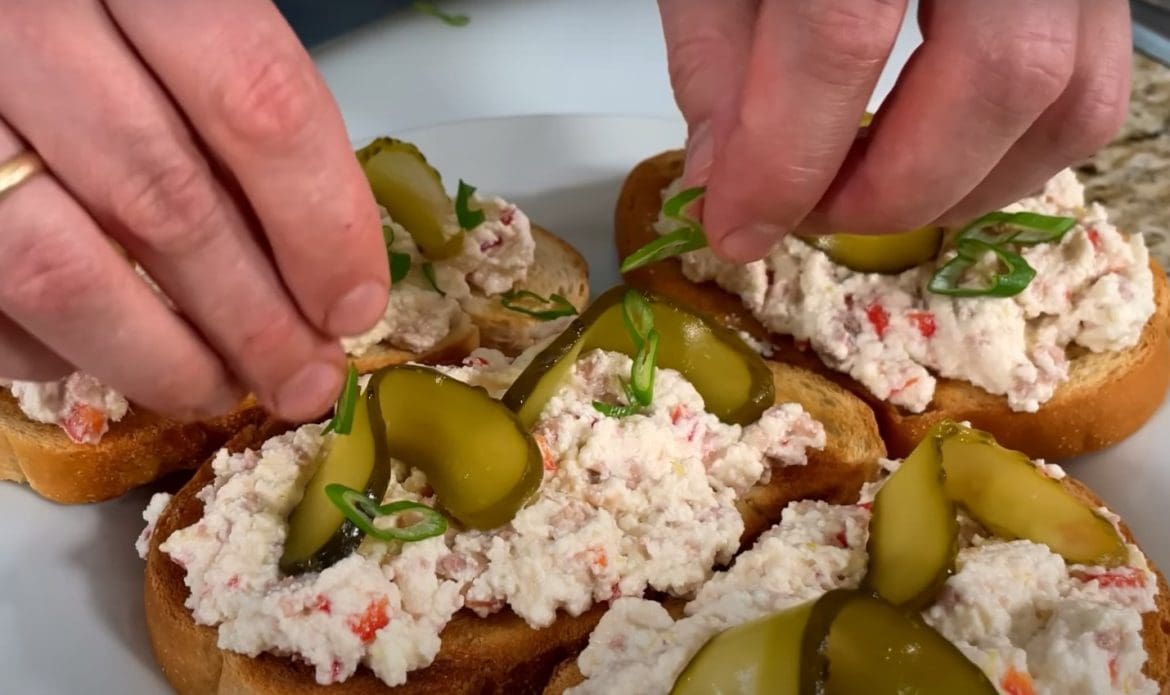 Su krekeriais. Maži užkandžių gabalėliai puikiai tiks vakarėliui.