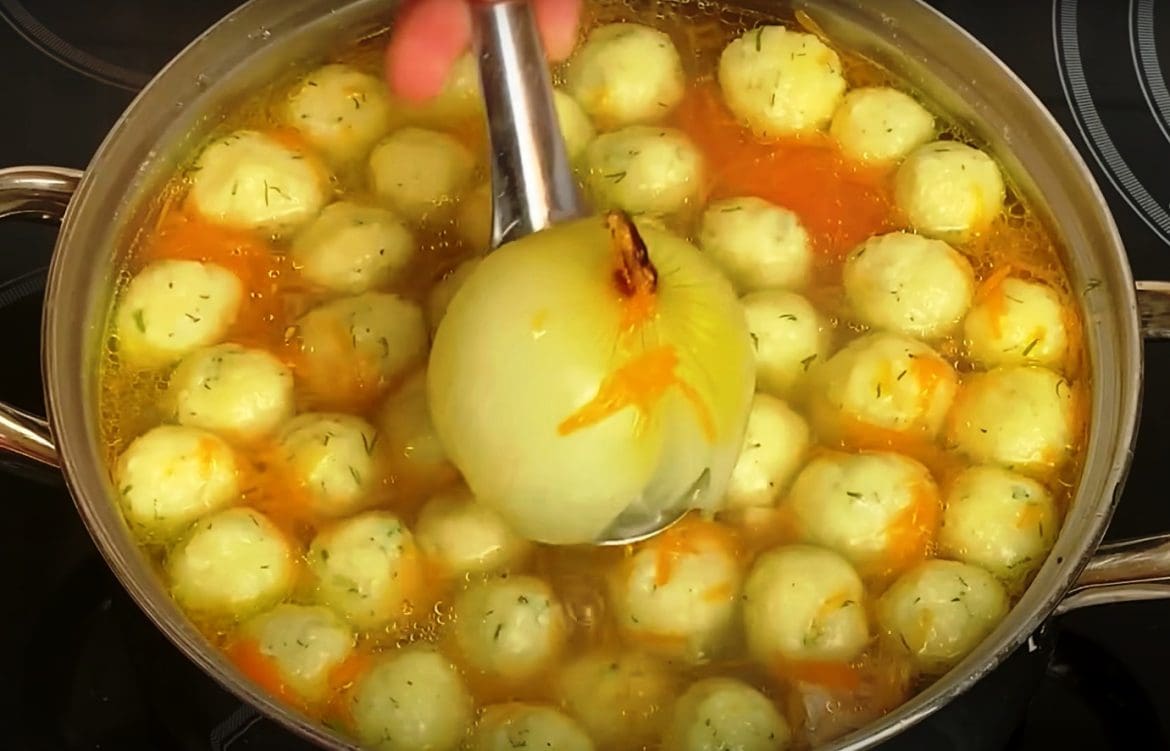 Rutuliukai sriuboje. Iš atvėsintos tešlos suformuokite mažus kamuoliukus ir sudėkite į sriubą. Virkite apie 7 minutes.