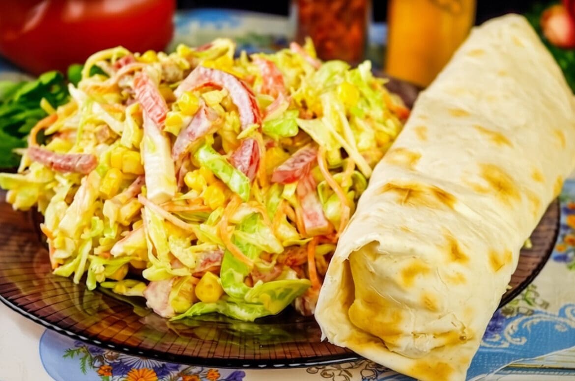 Šis ingredientų derinys yra gana paprastas, tačiau leidžia sukurti įvairiapusį skonį. Daržovės suteikia gaivumo ir traškumo, o krabų lazdelės ir dešra – sotumo.