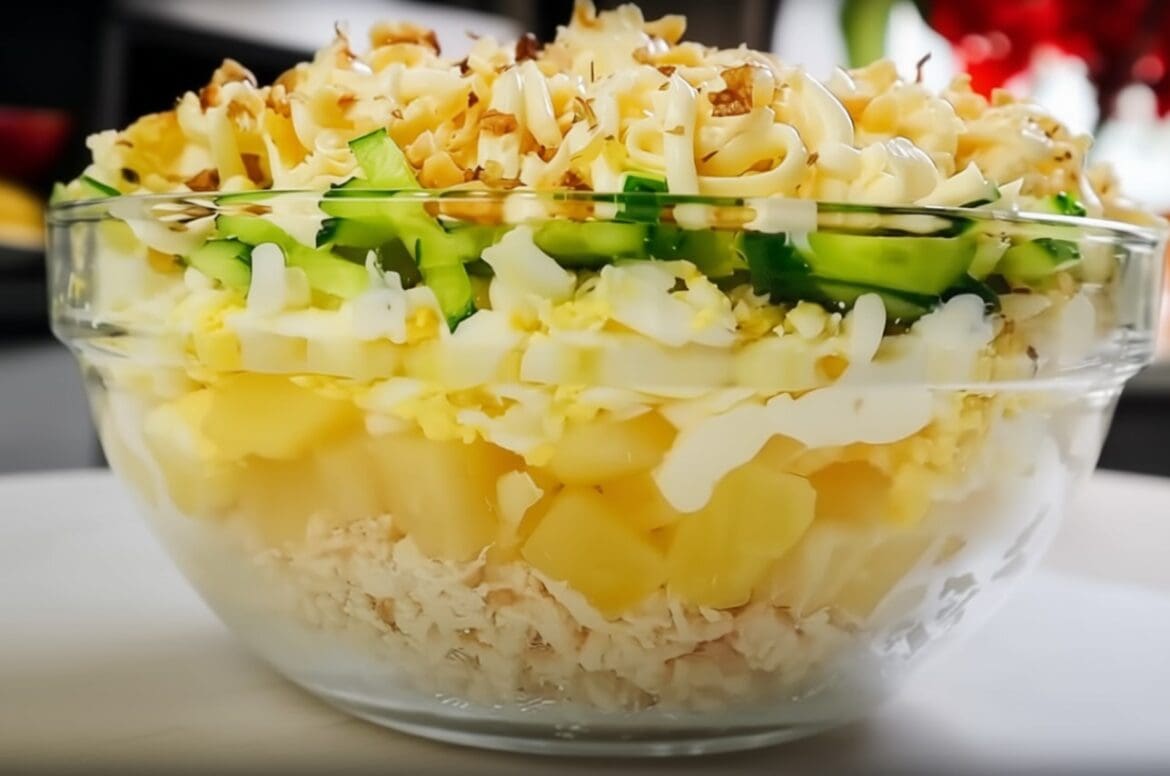 „Vandenio“ salotos – tai įdomus ir vizualiai patrauklus patiekalas, kuris išsiskiria ne tik sluoksnių struktūra, bet ir netikėtu skonių deriniu. Tokios salotos dažnai tampa šventinio stalo puošmena, nes jos atrodo elegantiškai, o jų skonis suderina kelis skirtingus ingredientus į vieną harmoningą visumą. Šis patiekalas puikiai tinka tiems, kurie nori išbandyti šiek tiek kitokius derinius, tačiau vis tiek išlaikyti pažįstamą ir malonų skonį.