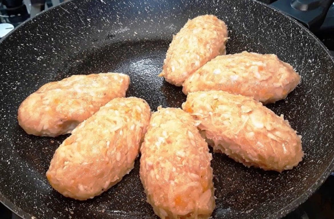Svogūnus supjaustykite mažais kubeliais, o morkas sutarkuokite stambia tarka. Keptuvėje augaliniame aliejuje pirmiausia pakepinkite svogūną, tada morkas.
