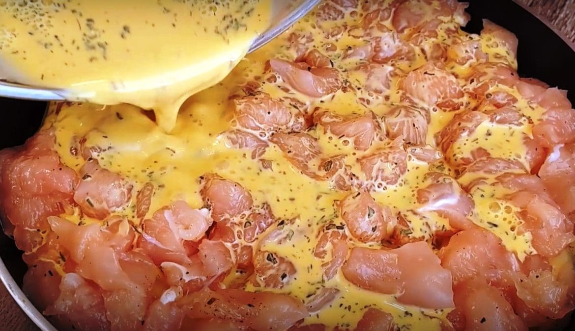 Supilkite kiaušinių mišinį ant būsimo troškinio.