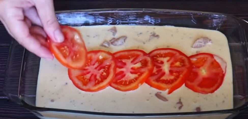 Pomidorų pridėjimas: Pomidorą nuplaukite, nuimkite žievelę (jei pageidaujate) ir supjaustykite griežinėliais. Šiuos griežinėlius išdėliokite ant viršaus, kad jie suteiktų papildomo skonio ir šviežumo.