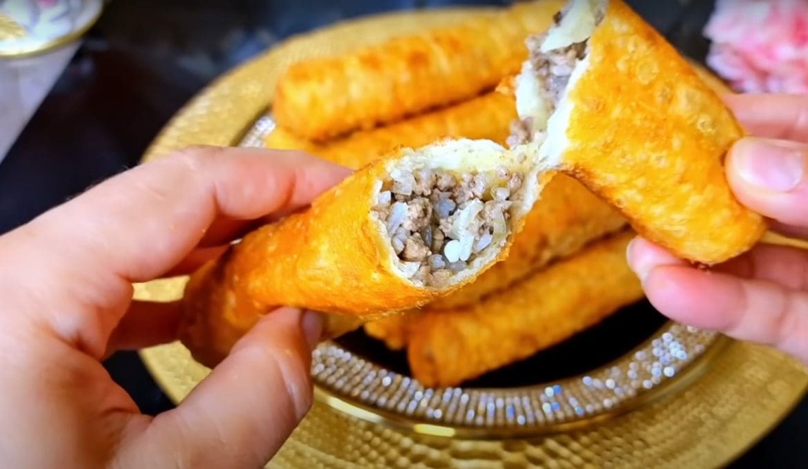 Rezultatas yra traškūs mėsos pyragaičiai vamzdelių pavidalu.