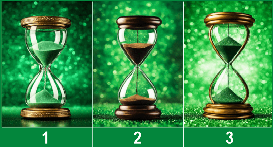 Paveikslėlyje pavaizduoti trys smėlio laikrodžiai – kiekvienas jų turi savo formą. Jų smėlis krenta neįtikėtinai tiksliai, sudarydamas užburiančią laiko tėkmę. Kiekvienas iš šių smėlio laikrodžių neša savo likimą ir paslaptis.
