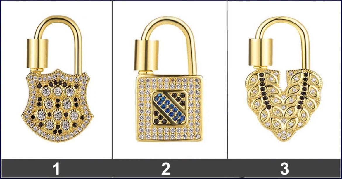 Priešais jus yra trys auksinės skirtingų formų ir dydžių spynos. Atidžiai apžiūrėkite juos ir išsirinkite tą, kuris labiausiai patraukia jūsų dėmesį. Neskubėkite ir per ilgai negalvokite, tiesiog vadovaukitės savo intuicija. Ar tu pasiruošęs?